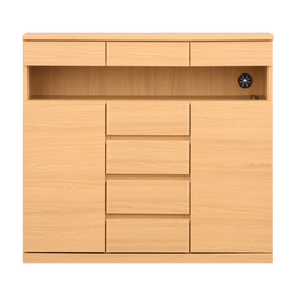 おおむね希望通りの商品で作りも良く部屋にも馴染み、収納力がありました!重さもありどっしりとしたサイドボードです。左下の大きな収納場所はつけ外し可能な板が付属しますが全て付けず排熱を考慮し電化製品を設置しています。材質のおかげか、熱がこもりにくく感じています。 また強いていうなら明るめのホワイトだと想像していましたが、写真のイメージよりも少しベージュ側に寄ったホワイト色だと感じました。 また引き出しの形状としてしょうがないかもしれないですが引き出し自体が取れるわけではないため奥に取り出しにくいデッドスペースが出来てしまうことが気にかかりました。