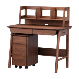 ウォルナット素材で、お値段もリーズナブルだった為に購入しました。想像以上に素材もよく、しっかりとしていて大満足です。デスクに付いている引き出しがもう少し深めだったらよかったかな?でも、デザインは大満足です。