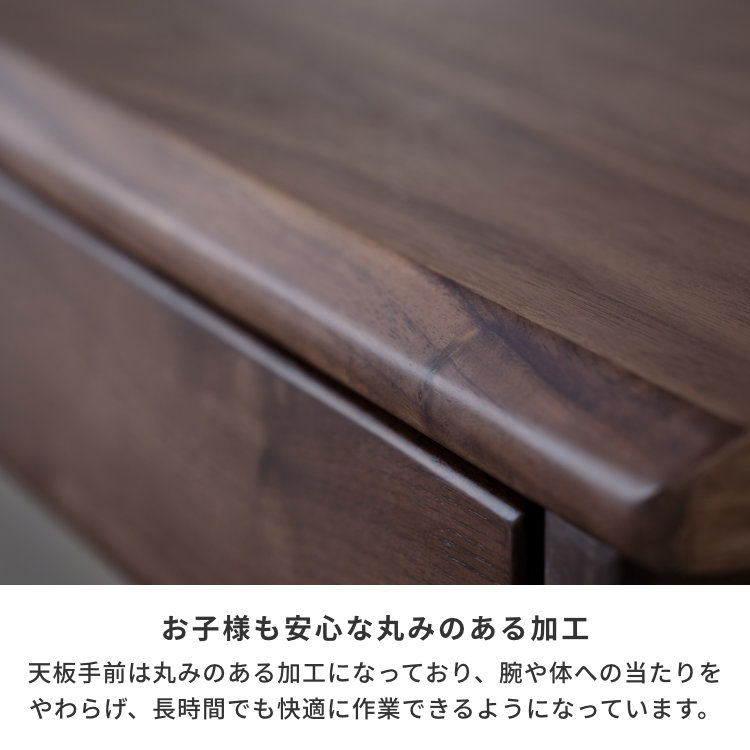 学習机 学習デスク ウォルナット天然木 木製 デスク 勉強机 PCデスク 子供部屋 キッズルーム 書斎 シンプル 家具通販 コンセント 幅110 高さ70 引き出し付 送料無料