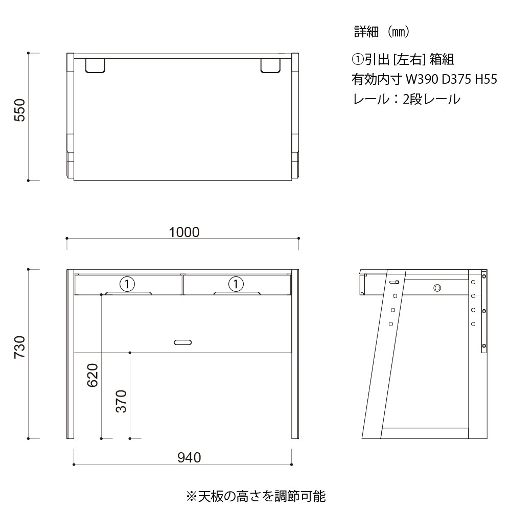 ※高さを最下段にした場合、同シリーズのワゴンは