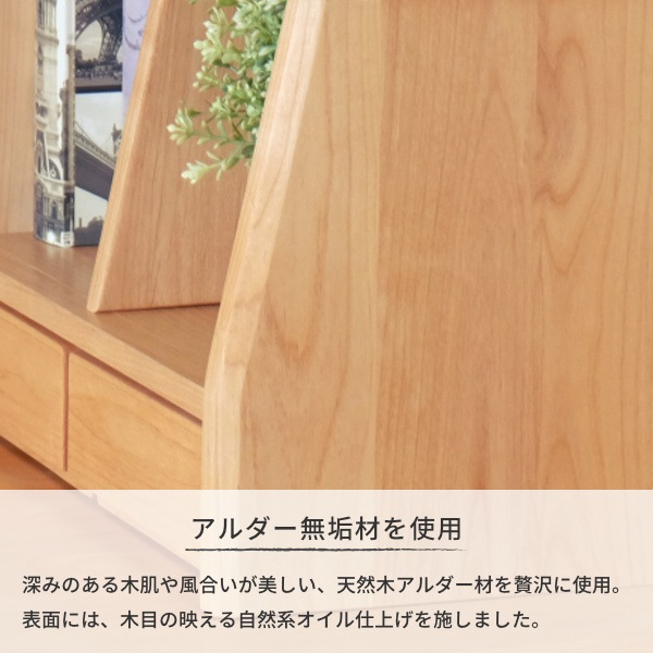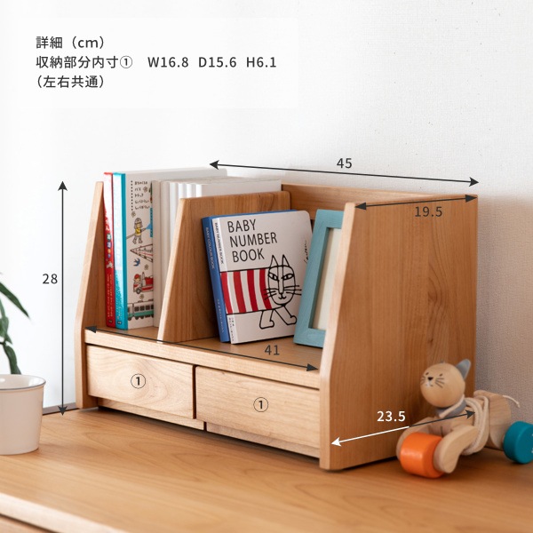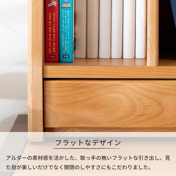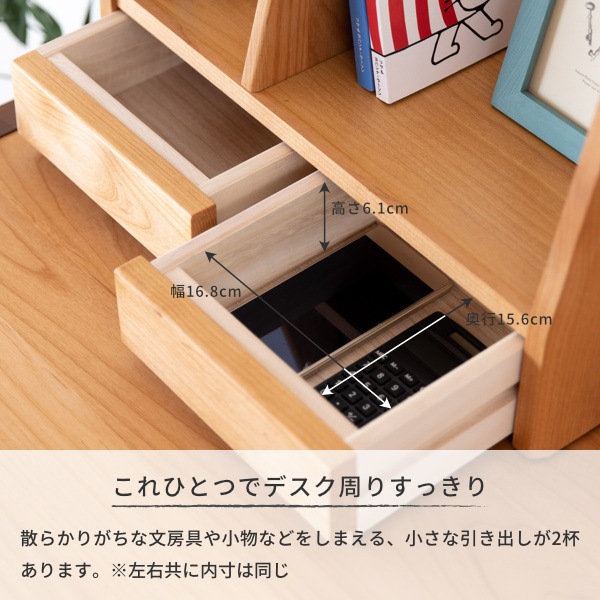 シンプルデザインで合わせやすく、便利な引き出し付きです