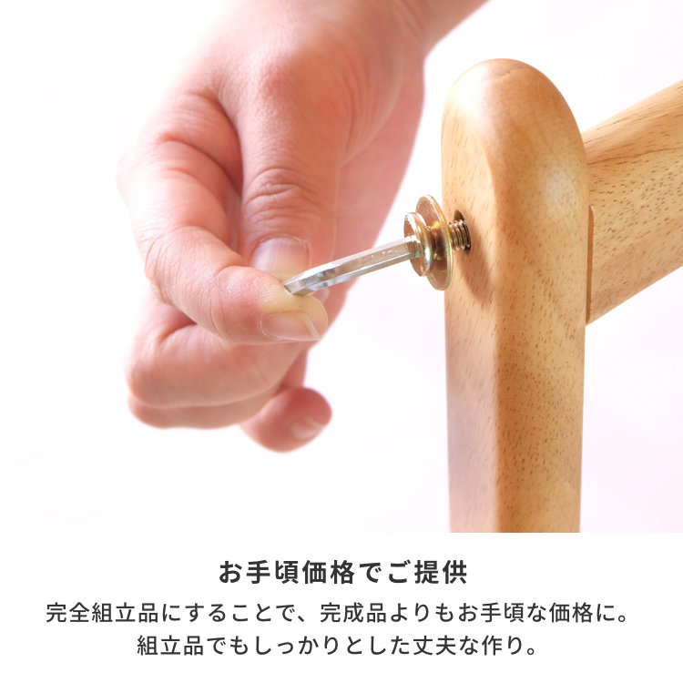 組立式にすることで梱包をコンパクトにし、完成品よりもお求めやすい価格でのご提供が可能となりました。フレームには無垢材を使用しております。高さ調節できる座面と足置きや、ロック機能付きのキャスターなど機能面は完成品と変わりませんのでご安心ください。ランドセルなどを置くことのできる棚が付いているのも嬉しいポイント。組立品でもながくご愛用いただける、丈夫なデスクチェアです。リビング学習や、ダイニングチェアにもオススメ。