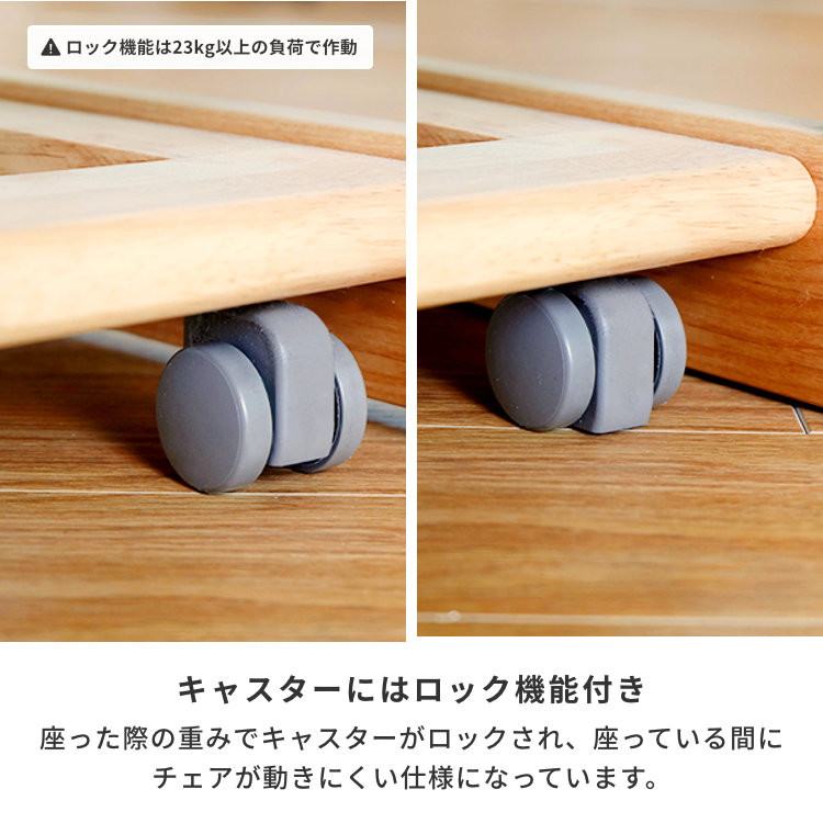 ・キャスターロック機能は座面に23kg以上の負荷がかかった場合に有効です。(※床面の状態やご使用条件によって異なります。)