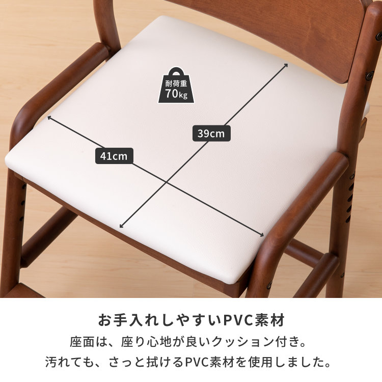 人気の『FIORE(フィオーレ)』シリーズのお求めやすい完全組立品タイプです。組立式ではありますが、丈夫な無垢材を使用したフレームや高さ調節のできる座面と足置きなど、機能面は完成品と変わりません。木製ならではの優しい風合いが特徴で子ども部屋のデスクチェアとしてご使用する以外にもリビング学習用の椅子、食卓に置くダイニングチェアとしてもご使用出来ます。細やかな高さ調整が可能で、お子様の姿勢をサポートしやすい位置に設定が出来ます。