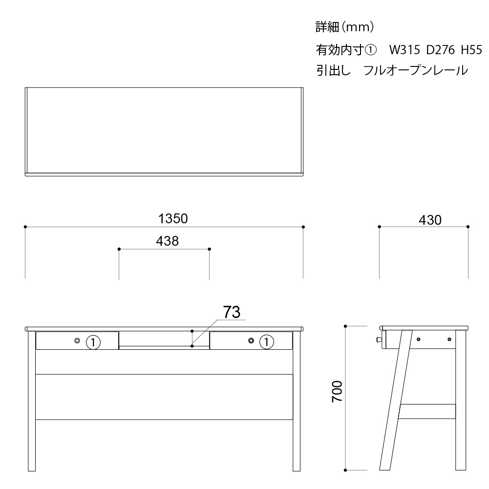 STOOL 44 (YE) 同じシリーズで探す 同じ素材で探す 同じシーンの商品で探す 同じテイストの商品で探す - レプトン デスクは幅135cm、2人で仲良く座れるワイドなサイズのツインデスクです。ご兄弟姉妹がいるご家庭では、複数デスクを買うよりも経済的という理由でお買い上げ頂くお客様もいらっしゃいます。また、コンパクトな住宅空間でもスッキリと置くことができます。左右にある2杯の引き出しはフルスライドレールで奥までしっかり引き出せ、引き出しのつまみは、ナチュラル、イエロー、オレンジの3色で変えられるようにデスクに付属していますので、気分やお部屋の雰囲気で変えてみてください。お子様が大きくなり、2人で使わなくなっても、家事用の作業台やPCデスクとしてもご活用頂けます。オーク材でしっかりと丈夫に作られていますので、永くご愛用頂ける商品です。
