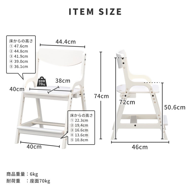 学習チェア ダイニングチェア 高さ調節 こども 椅子 姿勢 北欧 集中 勉強 いす 背もたれ 足置き アームレスト コンパクト 軽い 組み立て 一生紀 キッズチェア エアリー