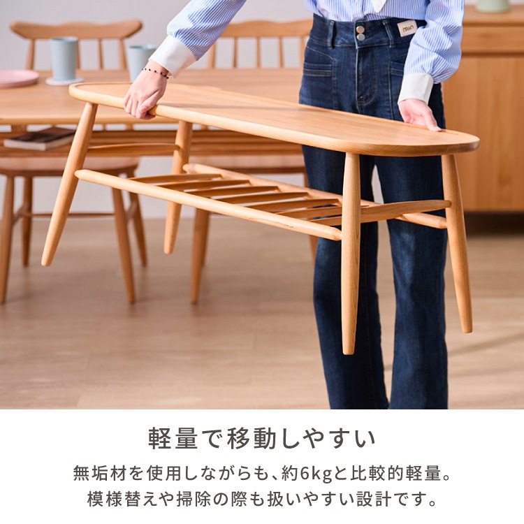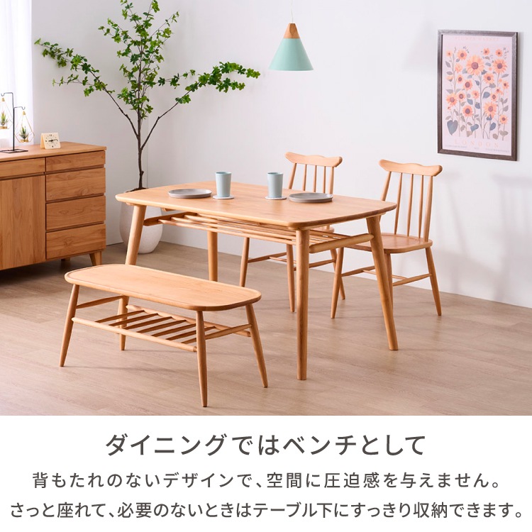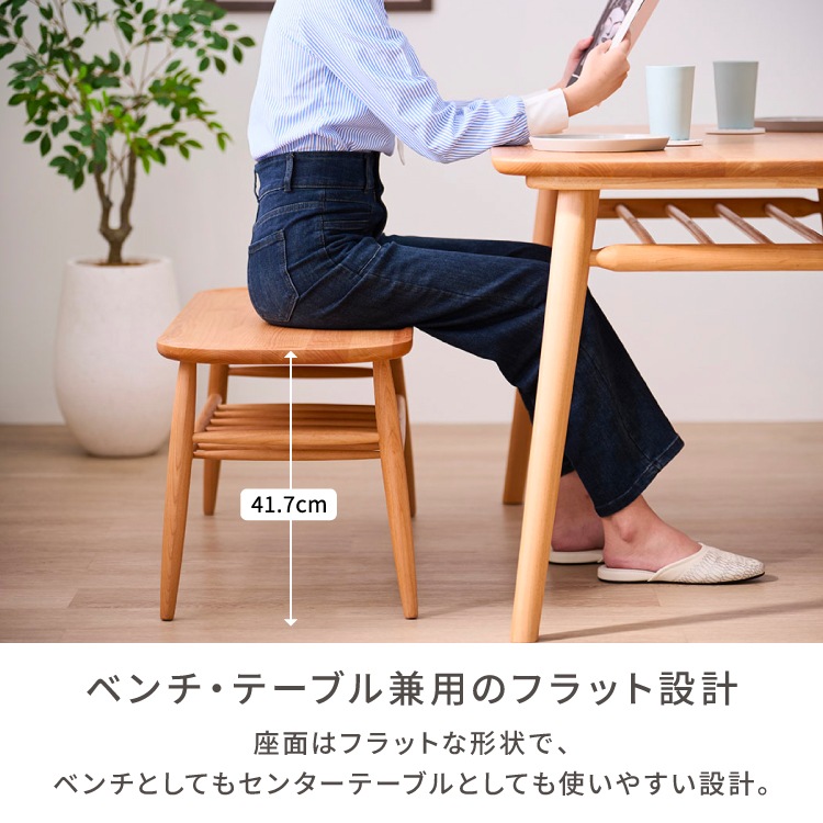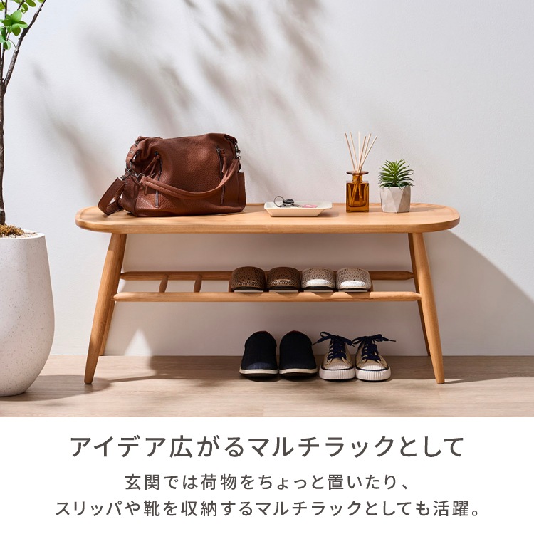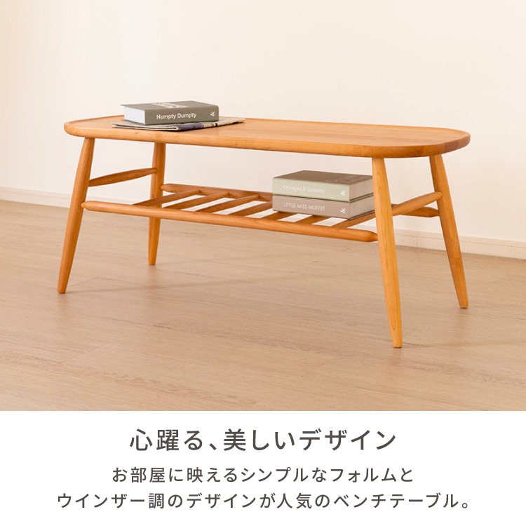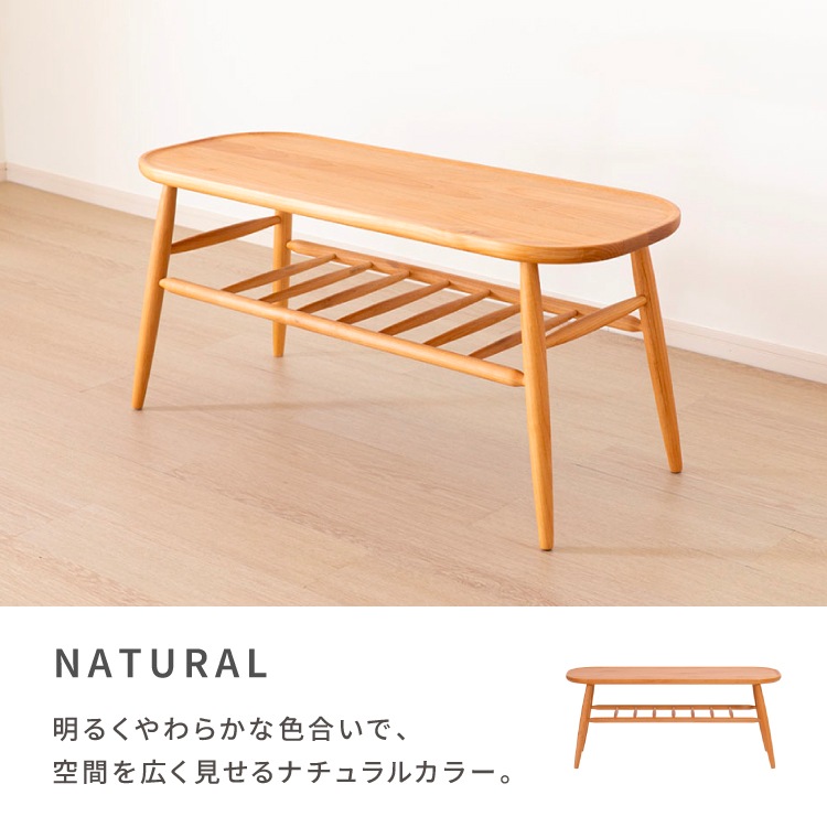 幅100 100cm ダイニングベンチ ベンチ 長椅子 チェア 椅子 腰掛け スツール 北欧ベンチ アルダー無垢材 ナチュラル家具 棚付きテーブル センターテーブル兼用 2人用 収納棚 ラック付き 背もたれ無し 木 無垢 楕円 完成品
