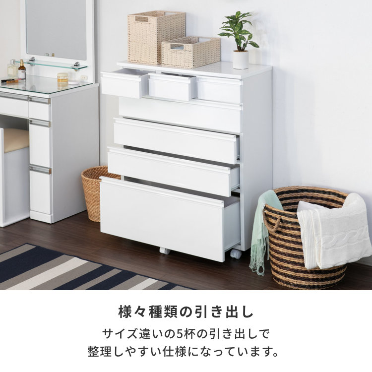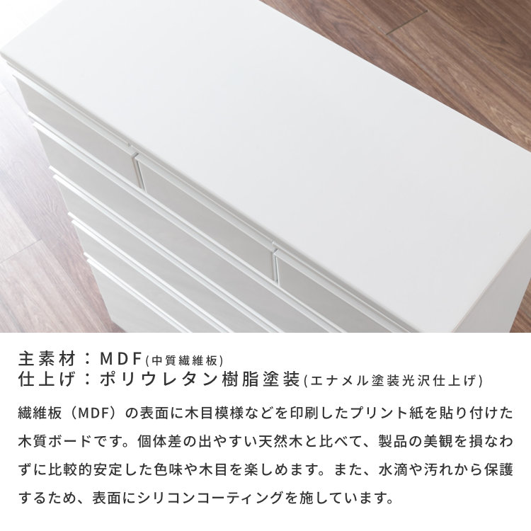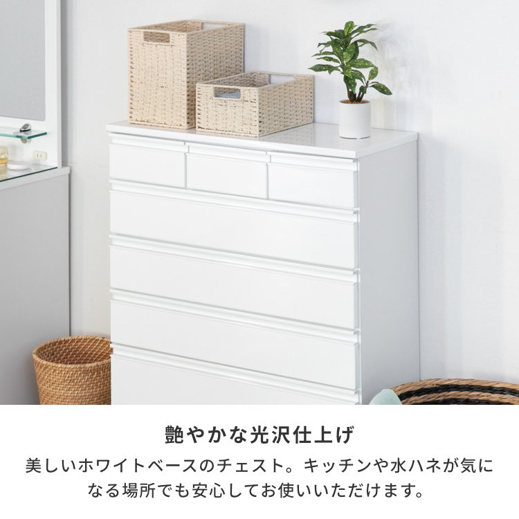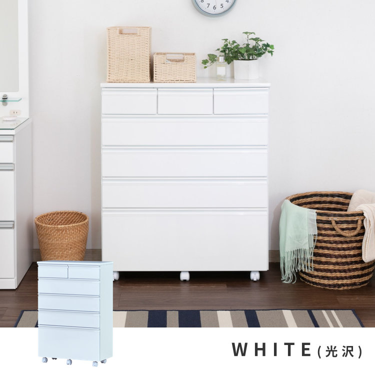 チェスト 収納 タンス 箪笥 ランドリー収納 サニタリー収納 幅75 奥行30 引き出し 桐材 シンプル キャスターつき リビング 寝室 子供部屋 エナメル塗装 家具 ホワイト