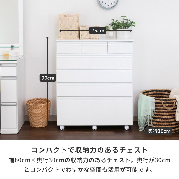 ドリット チェスト 75 (奥行30cm) (ホワイト)