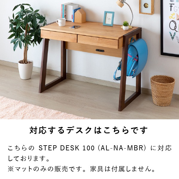 DESK 100同じシリーズで探す同じ素材で探す同じシーンの商品で探す同じテイストの商品で探す - 家具をキズや汚れから守る、ステップ100p幅デスク専用のマットです。お子様が学習でデスクを使用した時に、鉛筆の汚れや筆圧などからデスクを保護します。家具を長く使いたい方にはおススメです。