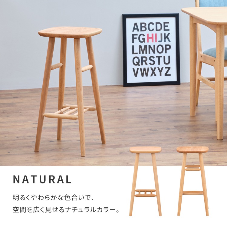 シンプルで温かみのある北欧スタイルのハイスツール。アルダー無垢材を使用し、角の丸みが安心。幅32cm 高さ65cmのシンプルな木製スツールです。おしゃれな北欧スタイルのダイニングに演出します。お部屋に馴染みやすいカラーが魅力的です。細身ですっきりとしたスマートな印象のデザインですが、アルダー材を贅沢に使い丈夫に作られています。ダイニングだけでなく、キッチンや洗面所、玄関など様々なシーンで活躍。別売りのクッションもあり、長くご愛用いただけるよう考えて作られております。