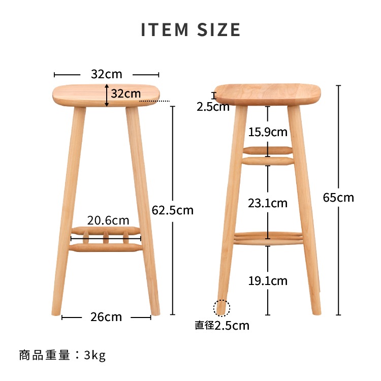 ノルン-3 ハイスツール 32 (ナチュラル)