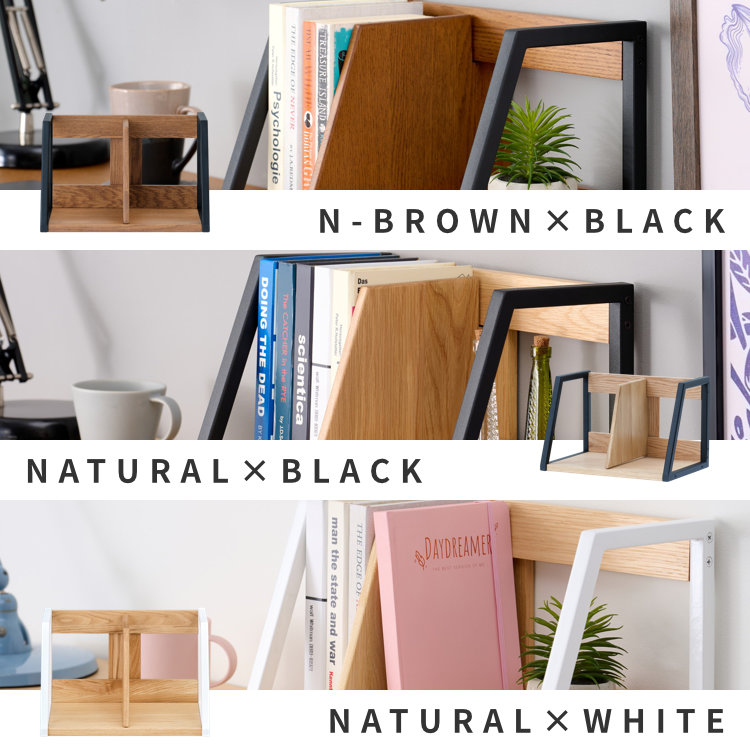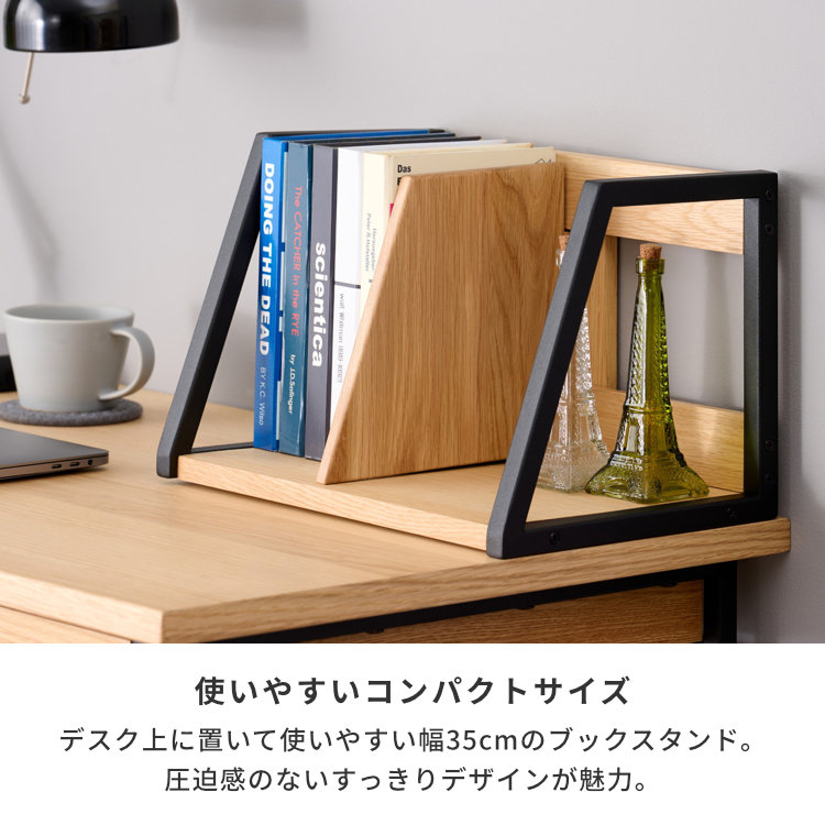 ブックスタンド ブックラック 本棚 棚 本 収納 ラック 木製ラック 机 卓上 デスク 周り 木 モダン インダストリアル 家具 オフィス 入学 就職 事務用品 頑丈 省スペース 小さめ 幅35 子供 オーク材 スチール 異素材