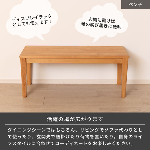 テーブルとベンチ2脚の組み合わせは、ダイニングスペースを有効に活用することができます。4人掛けにちょうどいいダイニングセットです。