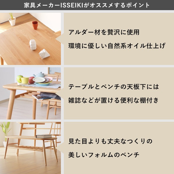 一生紀 ノルン ダイニング3点セット (テーブルx1 ベンチx2)