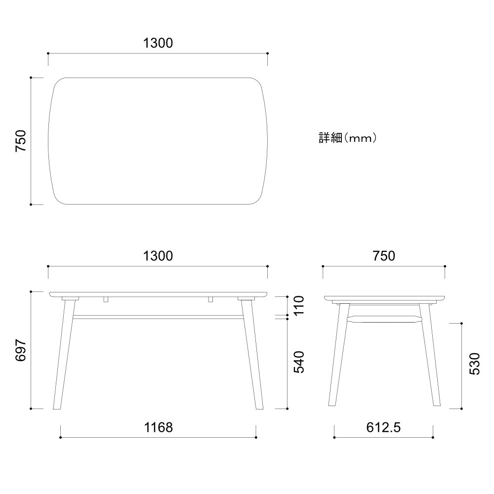 - テーブル:幅130x奥行75×高さ69.7cm