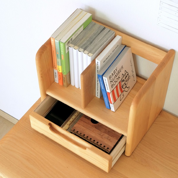 ERIS KIDS 100 DESK ERIS KIDS 34 WAGON (NA) ERIS KIDS-2 50 RACK (NA) ERIS KIDS RANDOSEL RACK 40 (AL-NA) ERIS KIDS RANDOSEL RACK 60 (AL-NA) 同じシリーズで探す同じ素材で探す同じシーンの商品で探す同じテイストの商品で探す - アルダー材を使用した、丸みを帯びた優しくてシンプルなデザインのエリスキッズシリーズのデスク・ブックスタンドの2点セットです。キッズルームだけでなくリビングなどに置いても違和感なくご使用いただけます。 デスクは、中央の引き出し内に横向きでB4サイズを収納させることができ、両サイドにはカバン掛けフックが付いています。ブックスタンドは、左右に仕切り板を移動させることができ、小物などの収納に便利な引き出しが付いています。