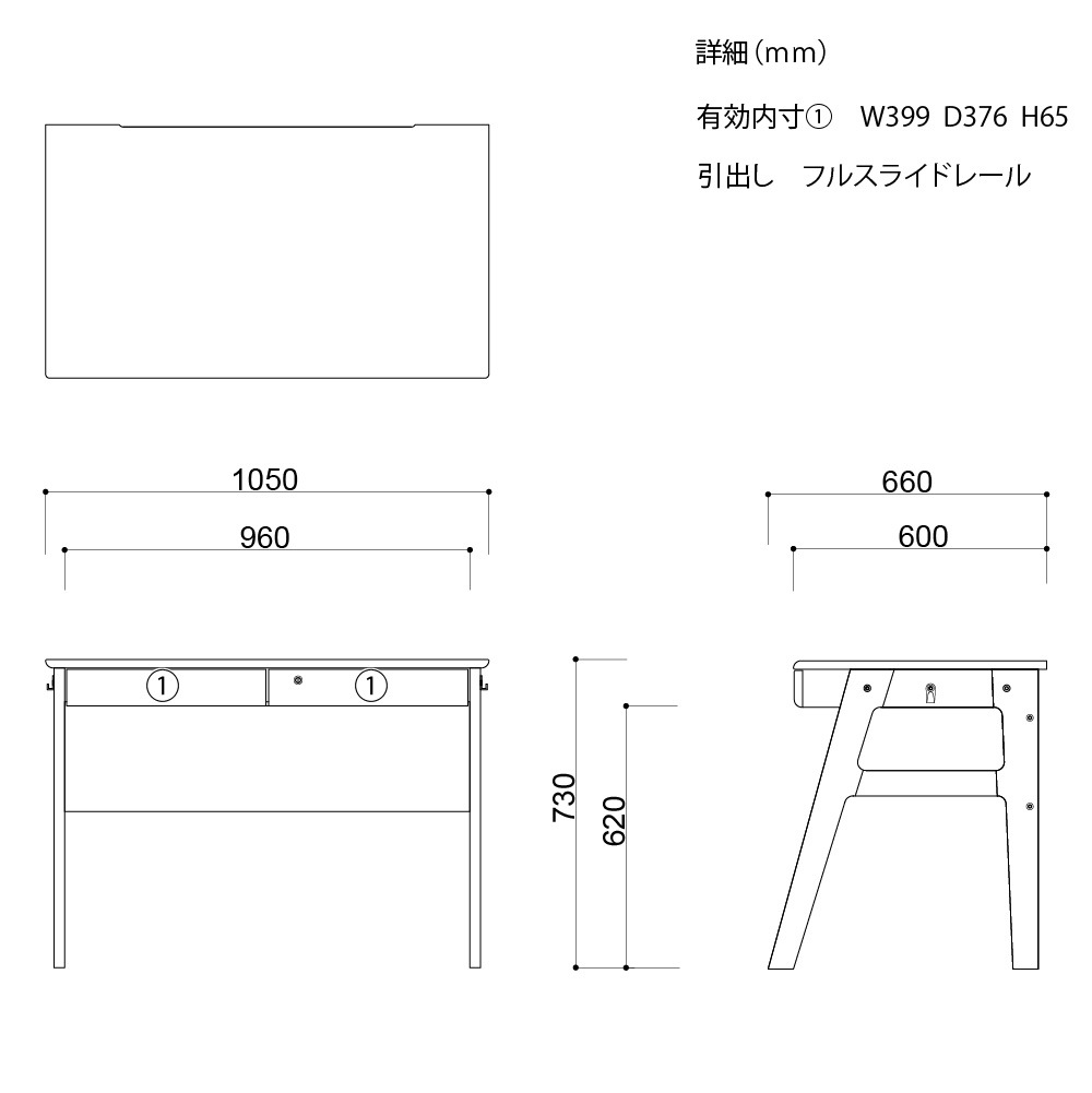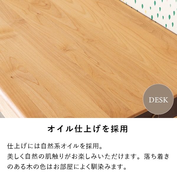 ECRU DESK 105 (NA) 同じシリーズで探す同じ素材で探す同じシーンの商品で探す同じテイストの商品で探す - アルダー材を贅沢に使った、「エクリュ」シリーズのデスクとワゴンの2点セット商品。デスクには2杯の引き出しを設け、フルスライドレールを採用。奥まで引き出しても落下の心配がありません。、引き出し内部は、調湿作用の高い桐材を使用。1杯は鍵付きとなっていますので、大事な書類などのの保管に便利です。両サイドにはランドセルやバッグを掛けるのに便利なフック付き。脚部はラバー無垢材を使用し、本体をしっかりと支えています。ワゴンは、3段の引き出しとストッパー付きキャスターを備えた、小回りの利くデスク用ワゴンです。どんなテイストのお部屋にもスッと馴染みやすいアルダー材を使った木製ワゴン。デスクの脇置きとして使うのはもちろんのこと、リビングやベッドルームで、ミニチェスト風に使うのもお勧めです。桐材の引き出しは、全てフルスライドレール。ペントレーや仕切り板もついておりますので、センス良く機能的にお使い頂けます。お子様だけではなく、大人でも使えるシンプルなデザインですので、学習机以外にも、PCデスクとして、家事デスクとして、幅広くお使い頂けます。