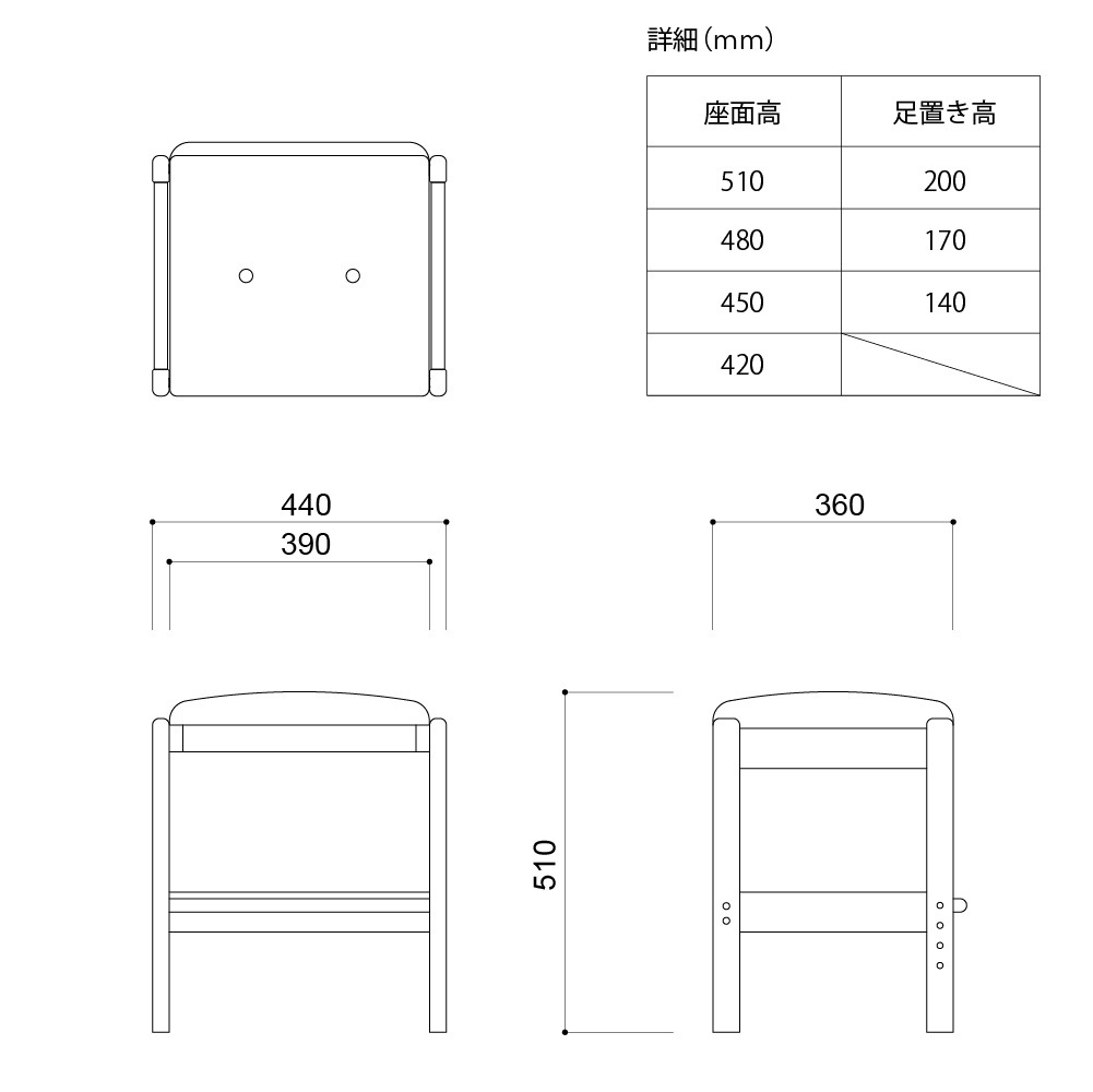 スツール:幅44x奥行36×高さ51cm - 商品重量