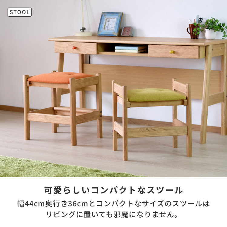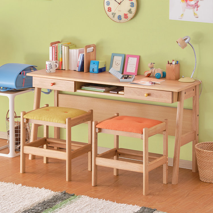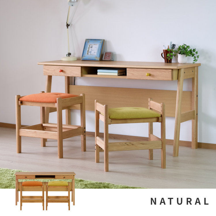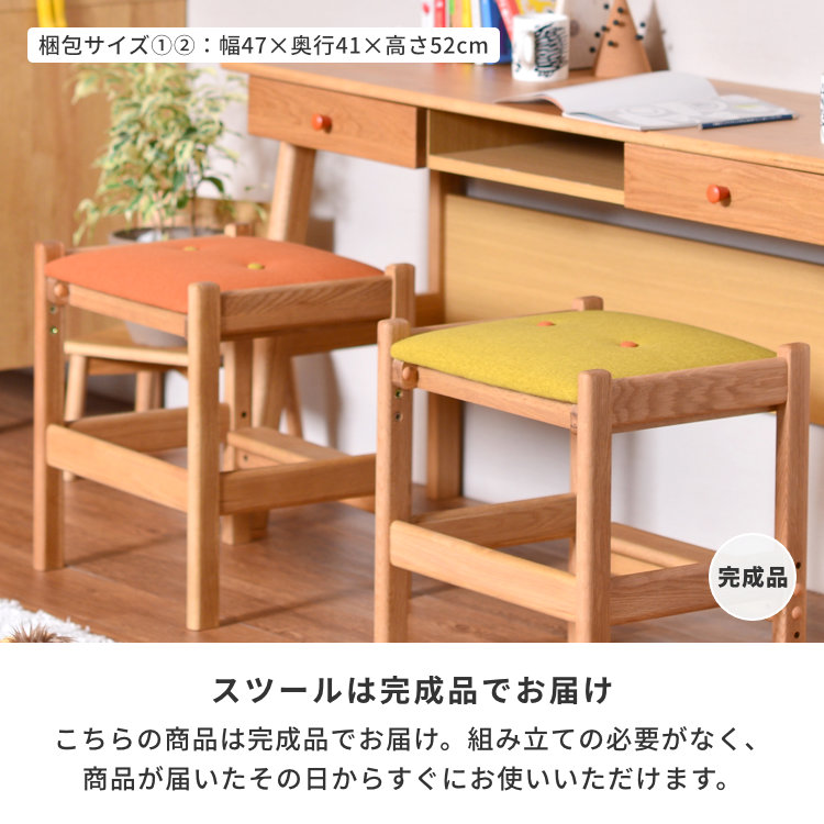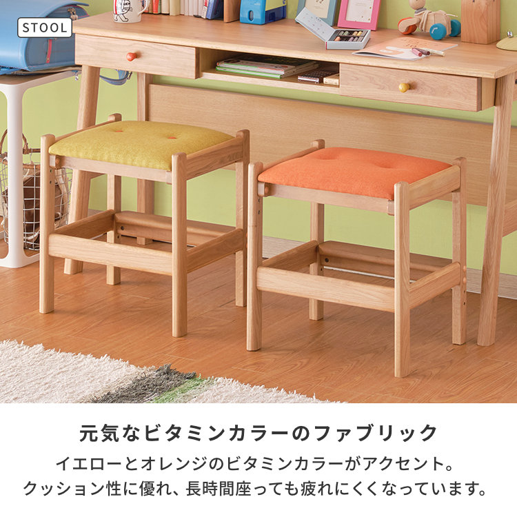- デスク:ナチュラル スツール:ナチュラル+イエロー,ナチュラル+オレンジ