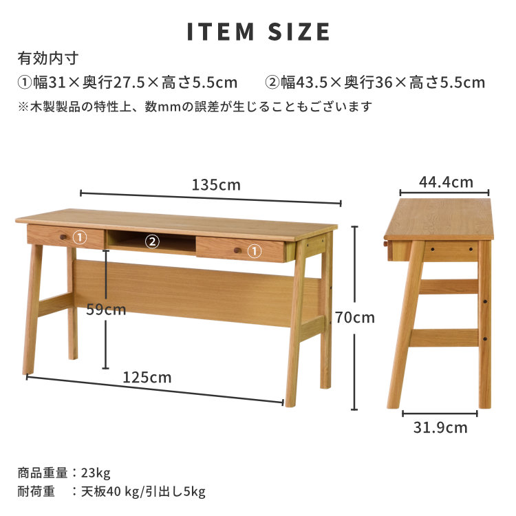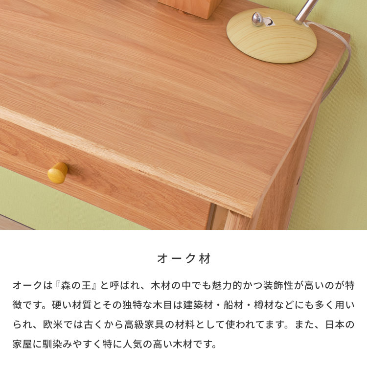 LEPTON DESK 135 同じシリーズで探す同じ素材で探す同じシーンの商品で探す同じテイストの商品で探す - きょうだいや親子などで、2人で仲良く座れる幅135cmの「LEPTON DESK 135」と、高さ調節できる昇降式の木製スツール「LEPTON STOOL44(2脚セット)」の学習デスク3点セットです。 木の風合いをたっぷり楽しめるオーク材を使った木製のデスクとスツールです。デスクは、お子様が大きくなったら学習机以外にも、PCデスクとして、趣味の物を作る作業台として等、様々なシーンで活躍できます。 スツールの座面は4段階で調節でき、体形やデスクの高さに合わせて座面高を変えられます。また、足置きも調節できます。座面カラーはビタミンカラーのイエローとオレンジの色違い2脚です。
