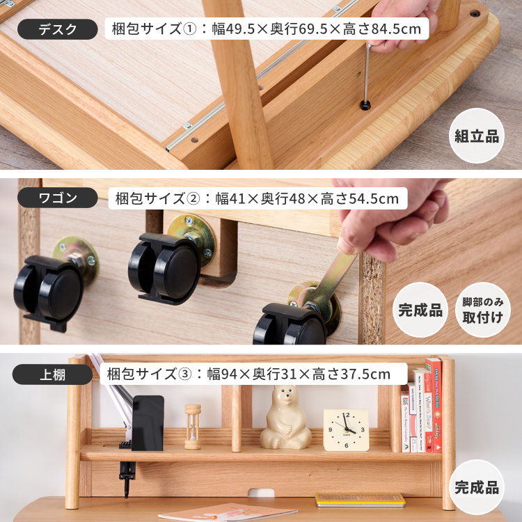 学習机 3点セット オーク ウォールナット 学習デスク シンプル 中学生 大人 勉強机 子供 ワゴン 上棚 キャスター 木製 シンプル 引出し 収納 コンパクト リビング 書斎
