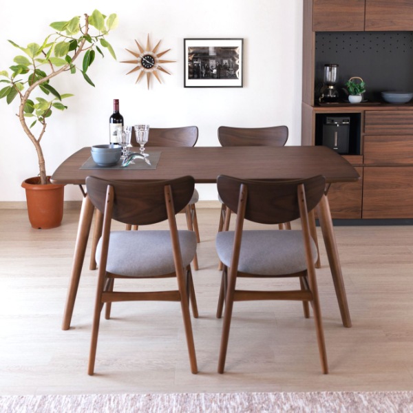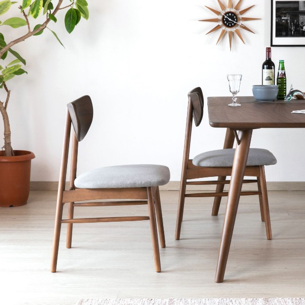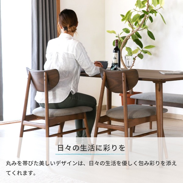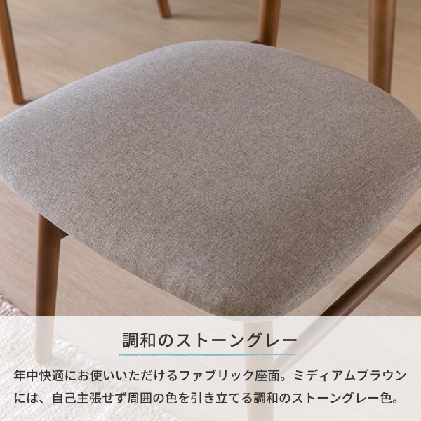 シンプルな椅子を選ぶときには、ダイニングテーブルの脚の細さとのバランスを考えて、統一感を持たせるためにダイニングテーブルと色が似たものを選ぶのがおすすめ。ストーングレーを使うことでお部屋全体のアクセントになります。全て木でそろえるのではなく、ファブリックをいれることで、生活感のないすっきりした印象のお部屋を作ることができますよ。嬉しい2脚セット。カップル、夫婦、家族が増えたときに2脚セットでお揃いの椅子を検討してみてください。