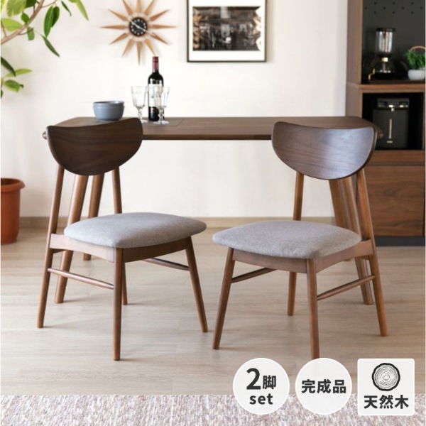 一生紀 【セット】クローン ダイニングチェア2脚セット(ミディアムブラウン)(ストーングレー)