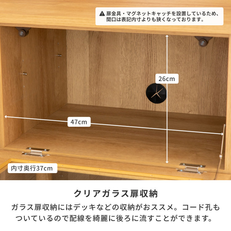 機能とデザインをワンポイントプラスしたシリーズ・『BASIC PLUS 44』。100cm幅とコンパクトな大きさが使いやすい!シンプルでベーシックなデザインのテレビ台です。アイアンの脚が全体を引き締めてくれる、北欧風のおしゃれなテレビボード。扉は開閉の簡単な開き戸タイプ。背面側にはコード通しや排熱孔も付いているので、熱を帯びやすいデッキやゲーム機の収納も安心です。間口が大きく開くのでスムーズに出し入れできます。扉はマグネットキャッチ付き。フラップ扉はソフトダウンステーでありませんので、開閉の際はお気を付けください。扉の収納スペースにはデッキやルーターなど、2杯の引き出しにはDVDやテレビ周りの細かな雑貨が収納できます。自在な空間づくりにお役立てください。