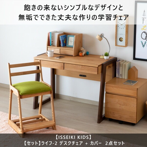 ISSEIKI KIDS【SET】LIFE-2 DESK CHAIR (NA+WH) + COVER (MISS-81LGR) 2点SET