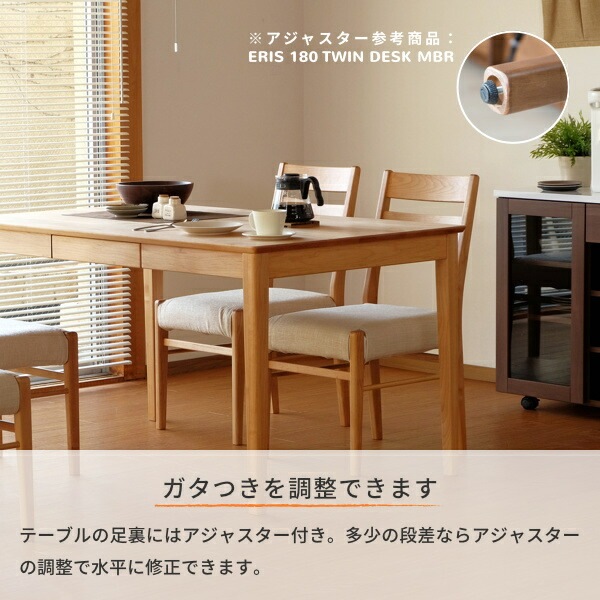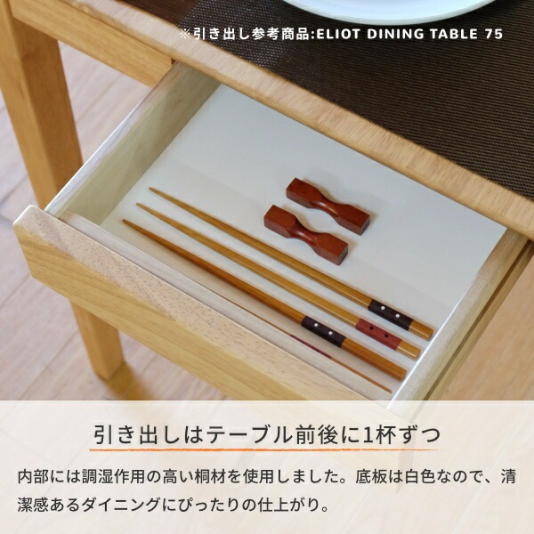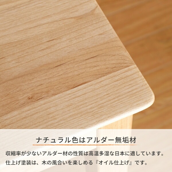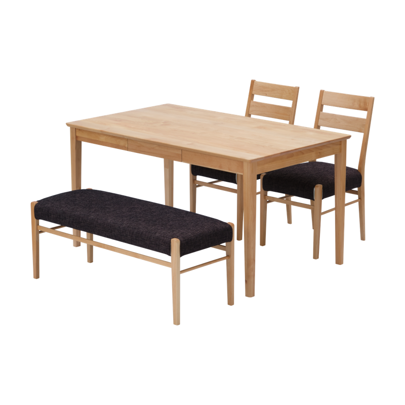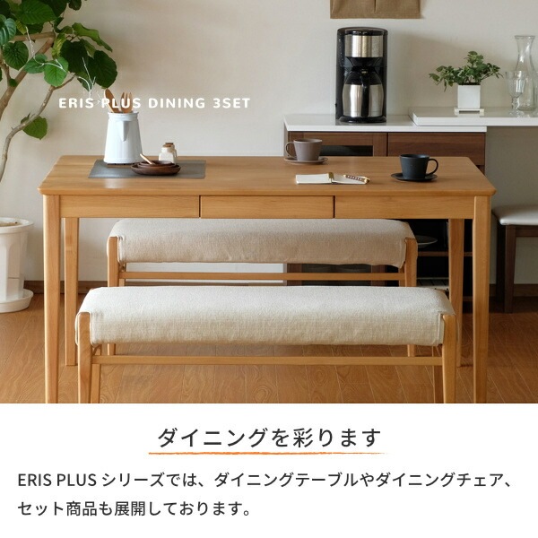 ERIS PLUS DINING TABLE 135 同じシリーズで探す同じ素材で探す同じシーンの商品で探す同じテイストの商品で探す - アルダー無垢材をたっぷり使った、ナチュラルテイスト溢れるダイニング4点セットです。ダイニングテーブルは木の風合いを感じることができるオイル仕上げですので、世界に二つとない美しい木目と、自然が織りなす自然な木色をお楽しみいただけます。幅は135cm、両サイドに引き出しも付いていますので、使い勝手も申し分ありません。ダイニングチェアとベンチも木の風合いを感じることができるオイル仕上げですので、世界に二つとない美しい木目と、自然が織りなす自然な木色をお楽しみいただけます。座面はホワイトのPVC。3色のカバーリングがついていますので、洗い替えでき清潔にお使い頂けます。気分やお部屋の雰囲気に合わせて付け替えることができます。