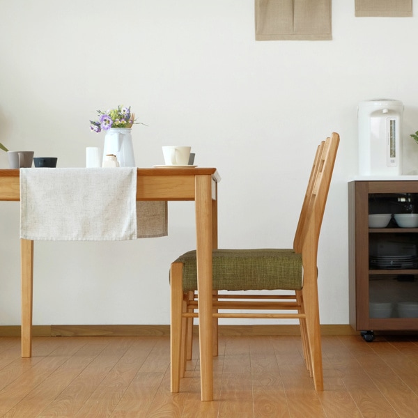 木目が緻密で美しい無垢材を使った、北欧テイストのダイニングチェアです。座面の張地はPVC生地を採用し汚れなどに強くなっております。また、カバーリング生地もあらかじめ同梱させていただいており、お部屋の雰囲気や気分に合わせて付け替えできる様、グリーン、ブラウン、ベージュの3色をすべて付属させていただいております。同じシリーズのダイニングテーブルと合わせてお使い頂ければ、統一感のあるダイニングを演出できます。同シリーズのダイニングテーブルと合わせて使いやすいチェア2脚セットの販売ページです。