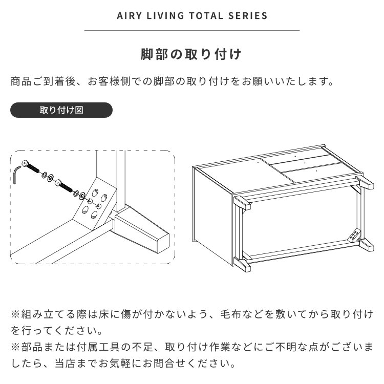 - 完成品※お客様にて取手・棚板・脚部の取付けが必要。