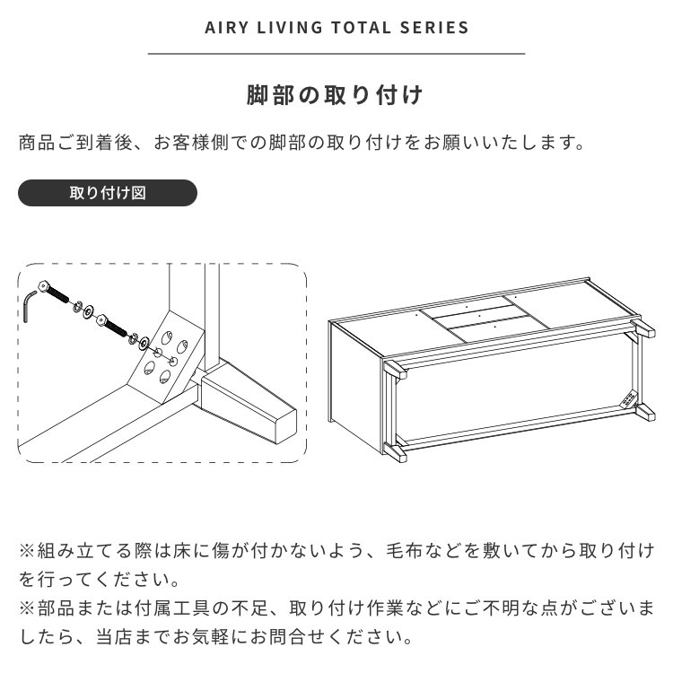 - 完成品※お客様にて取手・棚板・脚部の取付けが必要。