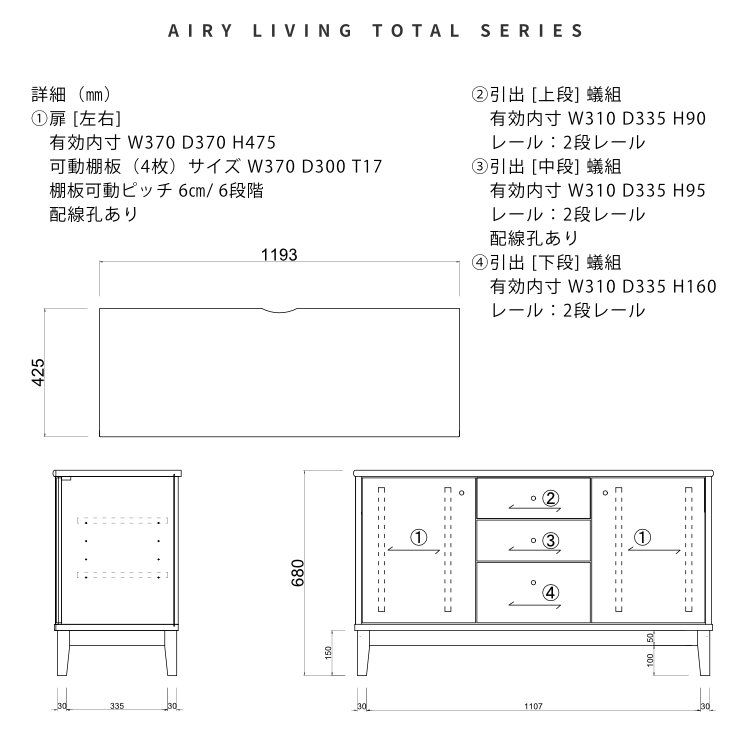 - 幅119.3cm 奥行42.5cm 高さ68cm