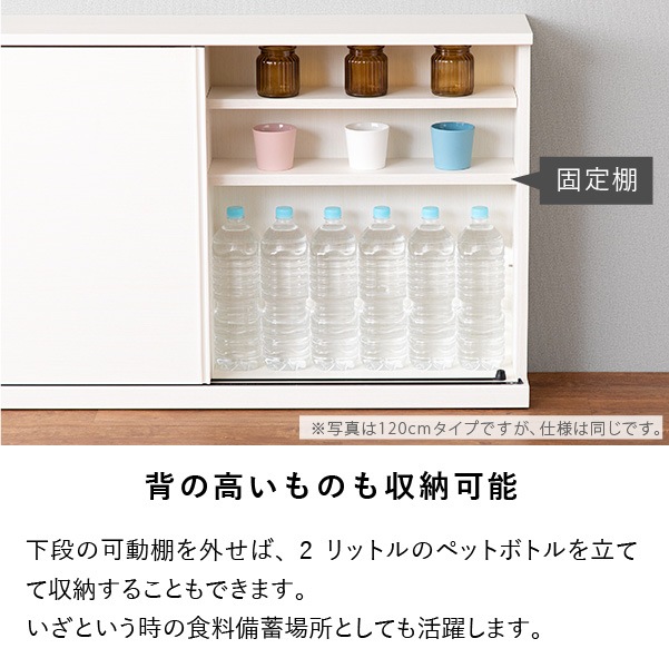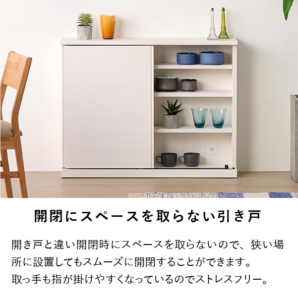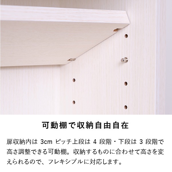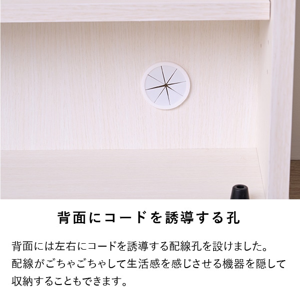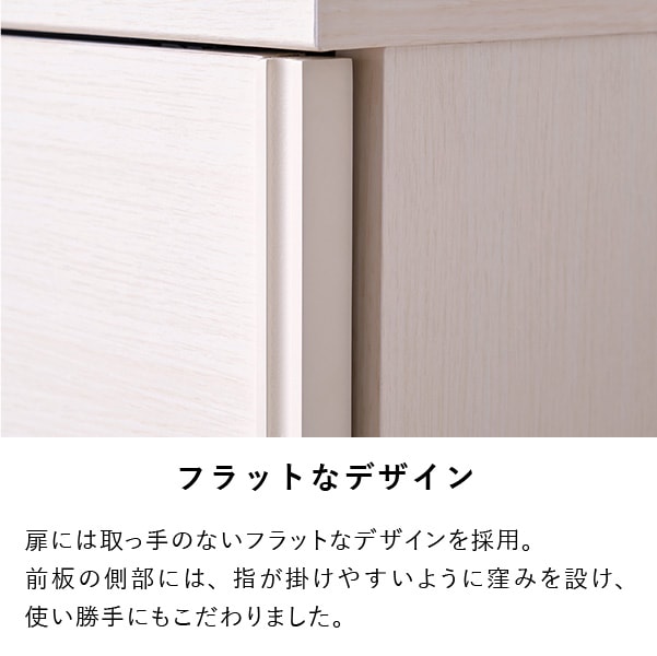 カウンター下を有効に活用できるカウンター下収納です。奥行き22cmと奥行浅めのスリムタイプですので、カウンターの天板下にすっぽりとちょうど良く収まります。爽やかなホワイト木目にシンプルで飽きのこないデザインは、ダイニングやリビング、寝室など様々な場所でお使いいただけます。天板が本体より1cmほどせり出してますので、幅木を除けて壁に設置できコード抜きにも活用できます。