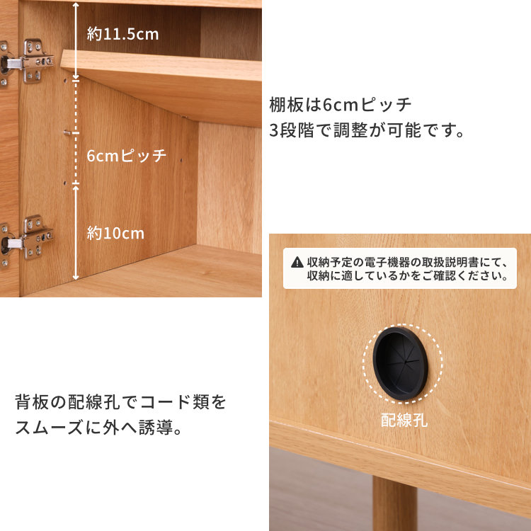 サイドボード リビングボード 幅119.3cm 高さ73.4cm 奥行40.8cm お掃除ロボット対応 天然木 オーク 突板 リビングボード レール付き 扉 A4サイズ収納 機能的 配線孔 電子機器収納 背面化粧 脚のみ取り付け