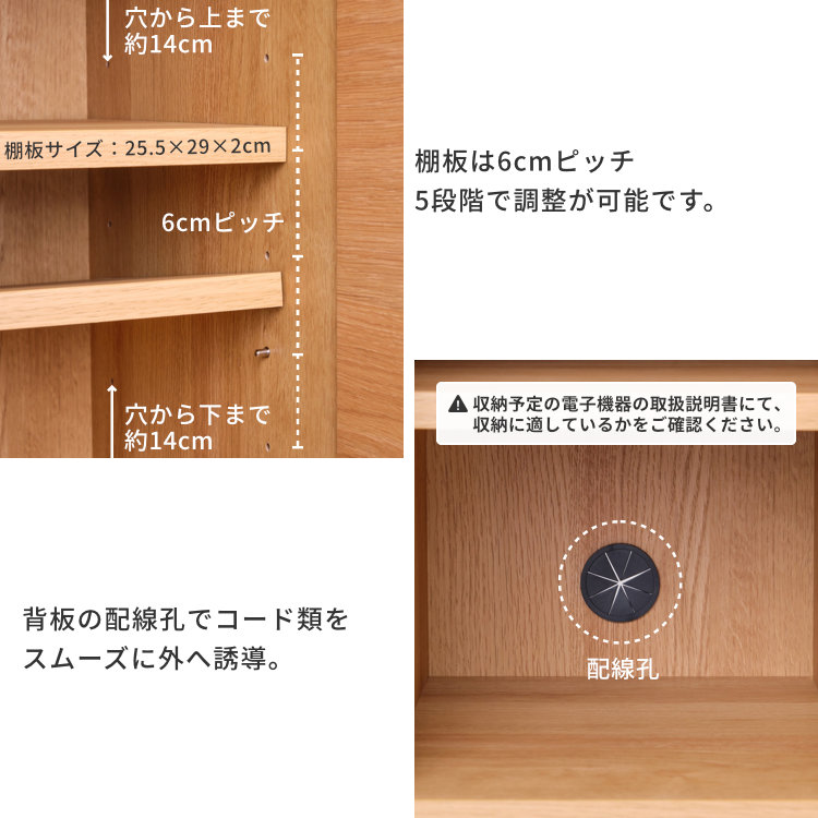 リビングボード サイドボード 幅59.8cm 高さ73.4cm 奥行40.8cm お掃除ロボット対応 天然木 オーク 突板 リビングボード レール付き 扉 機能的 コンパクト 配線孔 電子機器収納 背面化粧 脚のみ取り付け