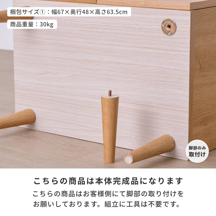 脚部:ラバー無垢材+プリント紙化粧繊維板(木目)