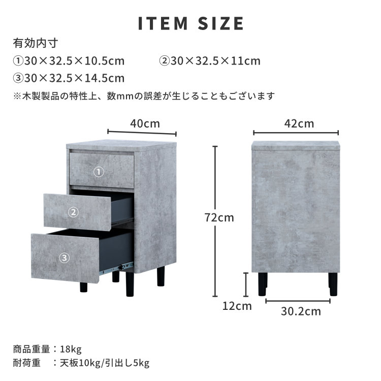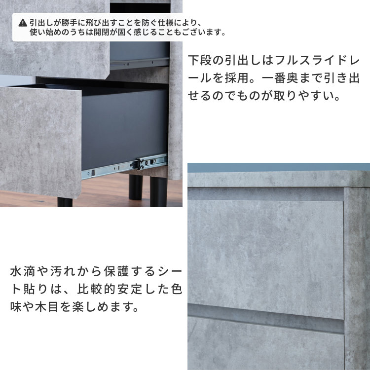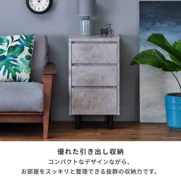 チェスト 幅40cm 3段 脚付き コンクリート柄 グレー モダン シック シンプル サイドチェスト ローチェスト サイドボード リビング収納 衣類収納 寝室 玄関 たんす 箪笥 引出し 木製 スタイリッシュ おしゃれ シート 背面化粧 ロータイプ