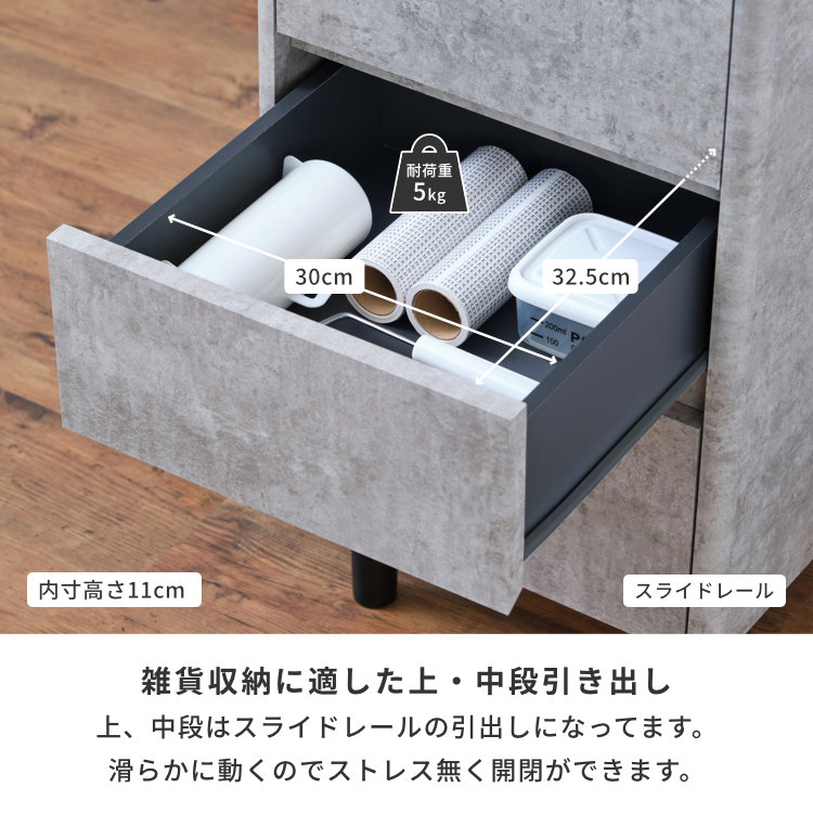 ミューズ3 ローチェスト 40-3段 (コンクリグレー)