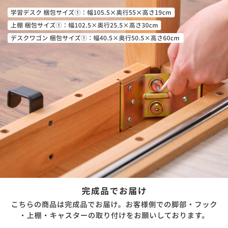 学習机 3点セット 幅100 机 上棚 ワゴン 3点 セット 勉強机 学習デスク 引き出し 木製 キャスター付き シンプル デスク デスクセット 子供 北欧 かわいい おしゃれ 棚 アルダー材 アルダー ベージュ