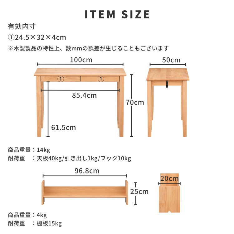 AIRYシリーズの学習デスクとデスクワゴン、上棚の3点セット。学習デスクは、リビングでも使いやすい幅100cm×奥行50cmコンパクトサイズです。ノートや文房具の整理整頓に便利な引き出しが左右に2杯あり、A4サイズの物を収納することが可能です。上棚を設置することで、スペースを有効活用することができます。デスクワゴンは、上下に2杯の引き出しがあります。A4ファイルを背表紙を見せて収納可能な深型の下段には、取り外し可能な仕切り板が1枚付属、奥まで引き出せるフルスライドレールを使用しています。2杯の引き出しに加えて天板上が物置きとして使え、よく使う文具やプリントを置いておくのに便利です。
