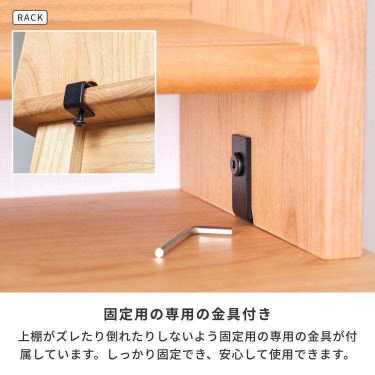 棚板:プリント紙化粧繊維板(木目)+面木(アルダー材)