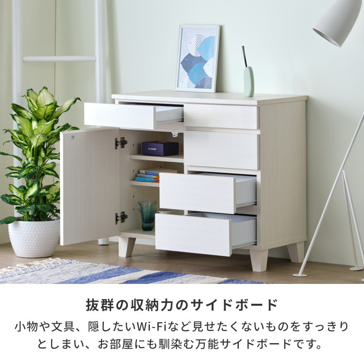 幅80 奥行40 ホワイト サイドボード キャビネット リビングボード ローチェスト 北欧 木製 完成品 おしゃれ 収納棚 リビング収納 引き出し リビング 食器棚 一人暮らし 新生活 引っ越し