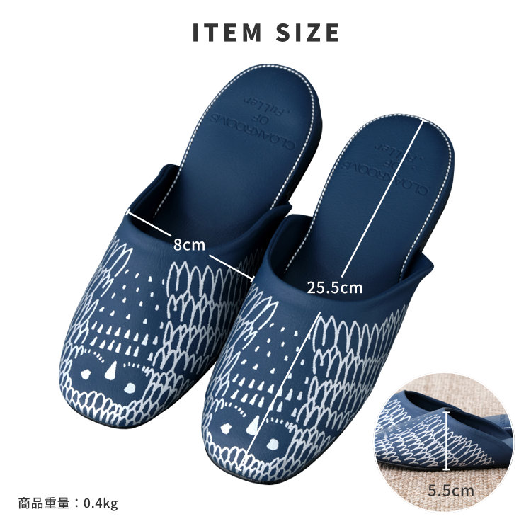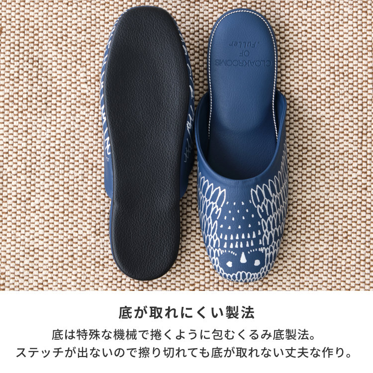 スリッパ ルームシューズ Mサイズ ネイビー 合皮 PVC お手入れ 清潔 来客用 新築祝 トイレ 引っ越し祝 ギフト プレゼント 北欧雑貨 インテリア雑貨 日本製 CLOAKROOMS
