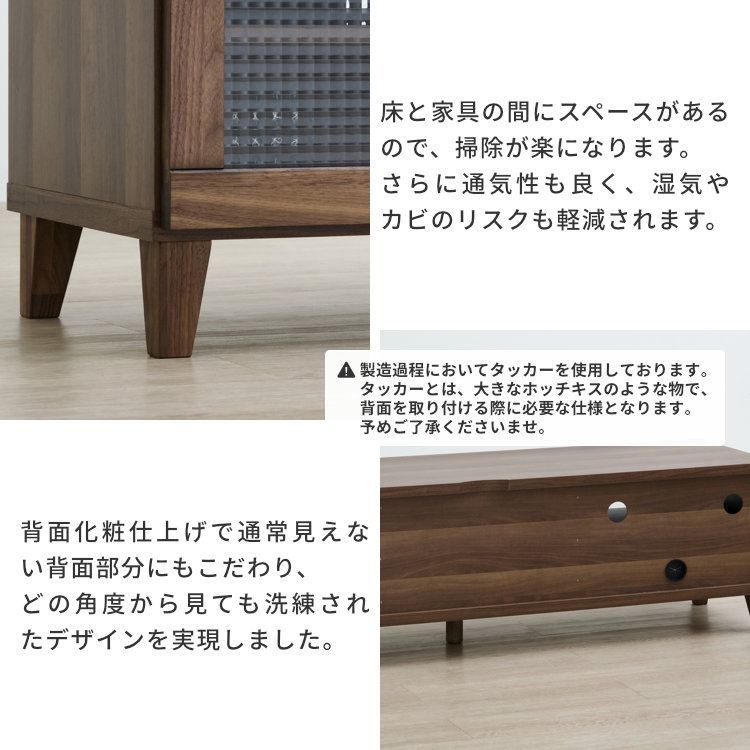 - 天板:プリント紙化粧繊維板+面木(ウォルナット無垢材)