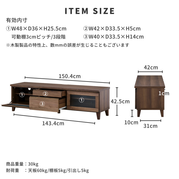 幅150 テレビ台 テレビボード ローボード tvボード tv台 テレビ 台 おしゃれ 完成品 引き出し 北欧 棚 収納 55インチ 50型 ウォールナット 人気 木製 リビング収納