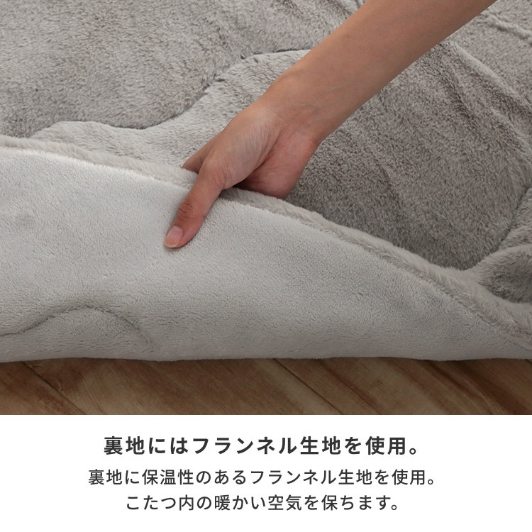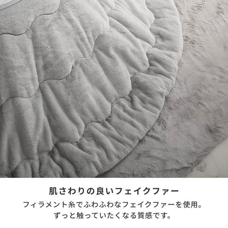 - ※液温は40℃を限度とし、手洗いができる。(洗濯機は使用できません)、干し方=日陰のつり干しがよい。※ 本商品は、同シリーズでも色味が異なる場合がございます。あらかじめご了承ください。※ フェイクファーは、毛足の向きによって色の見え方が変わるのが特長です。※ 生産時期により同色でも若干色味が異なる場合がございます。※ 使い始めは遊び毛が出る可能性がございますので、ご使用前に掃除機でやさしく吸い取ってください。※ 滑らかな肌触りが特徴の製品です。ご使用中の転倒にご注意ください。※ふとんがヒーターに当たらないようにご使用ください。(火災の原因になります)