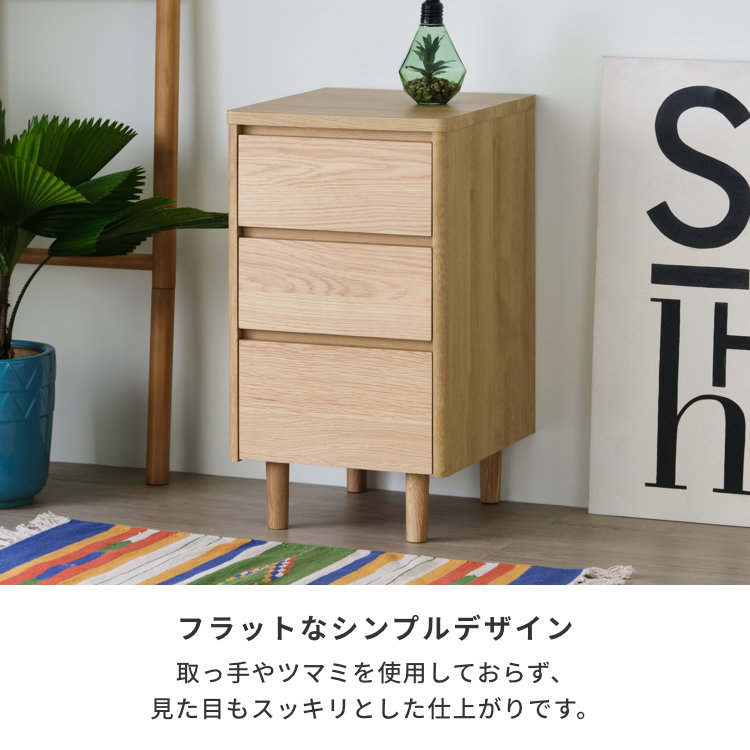 チェスト 幅40cm 3段 脚付き オーク ナチュラル モダン シック シンプル サイドチェスト ローチェスト サイドボード リビング収納 衣類収納 寝室 玄関 たんす 箪笥 引出し 木製 スタイリッシュ おしゃれ 背面化粧 ロータイプ